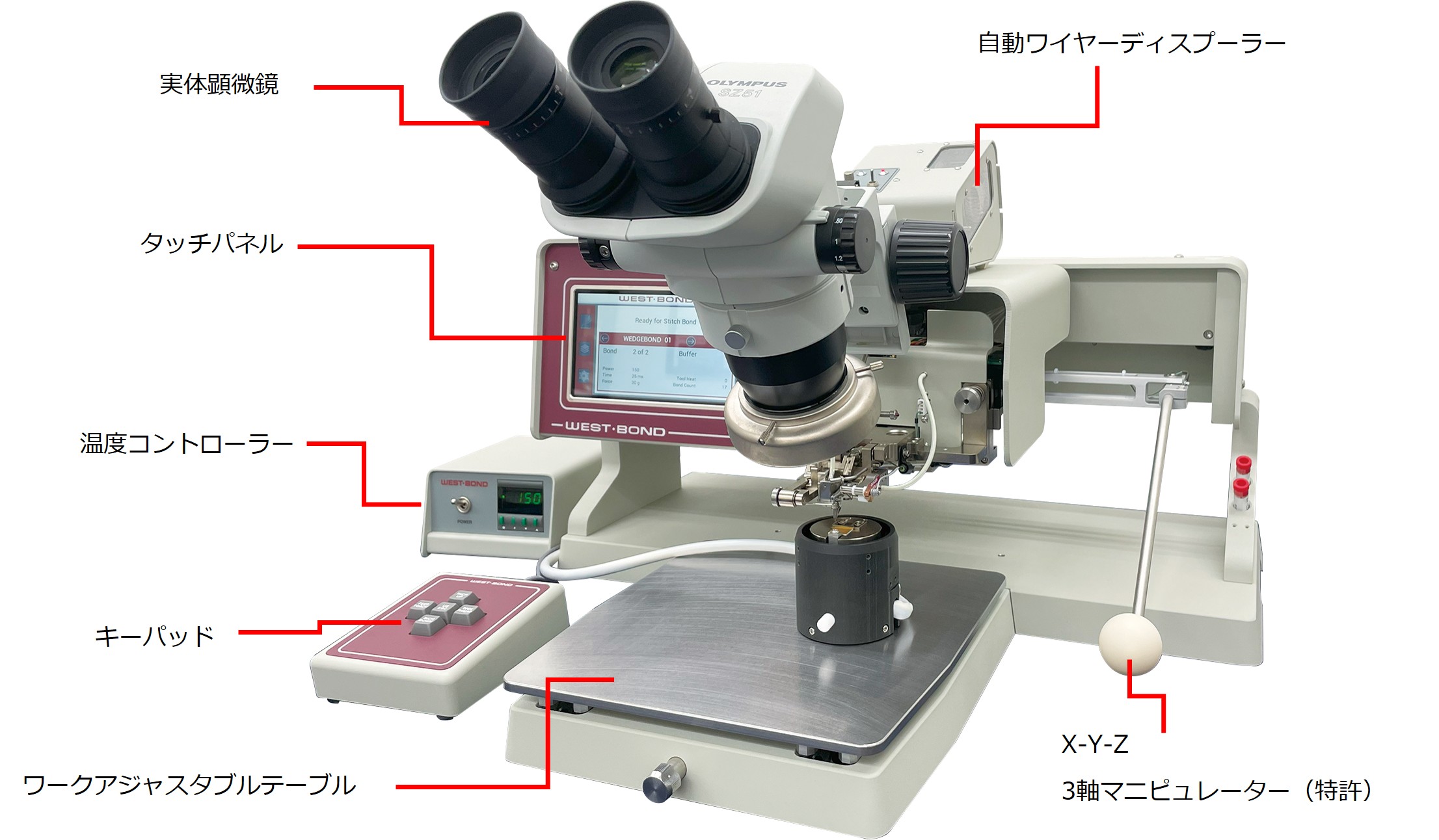 モデル7KFはボールボンディング、ウエッジボンディング兼用のマルチワイヤーボンダーです。