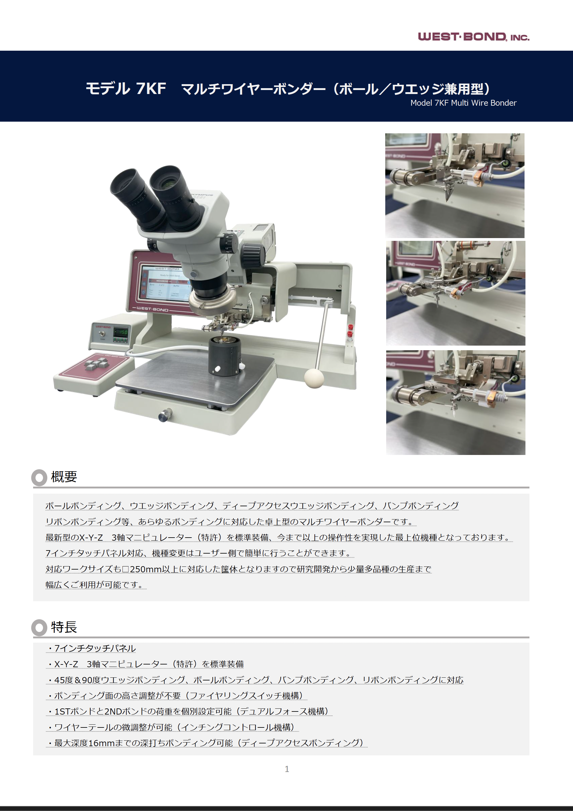 モデル7KFは少なくとも9種類のボンディングに対応したマルチワイヤーボンダーとなっております。