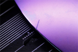 サンプルの狙った箇所の裏面にスクライブラインを入れることができ、表面には全くダメージを